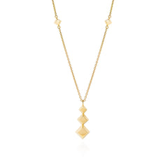 The gold triple pyramid necklace is a celebration of the geometric and minimal, inspired by the aesthetics of ancient architecture.