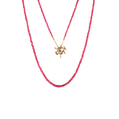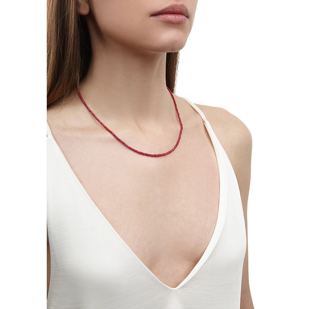 A beautifully strung necklace of faceted ruby beads, brings a subtle hit of colour to everyday outfits. Wear it on its own or layered with other necklaces for a more bohemian look.