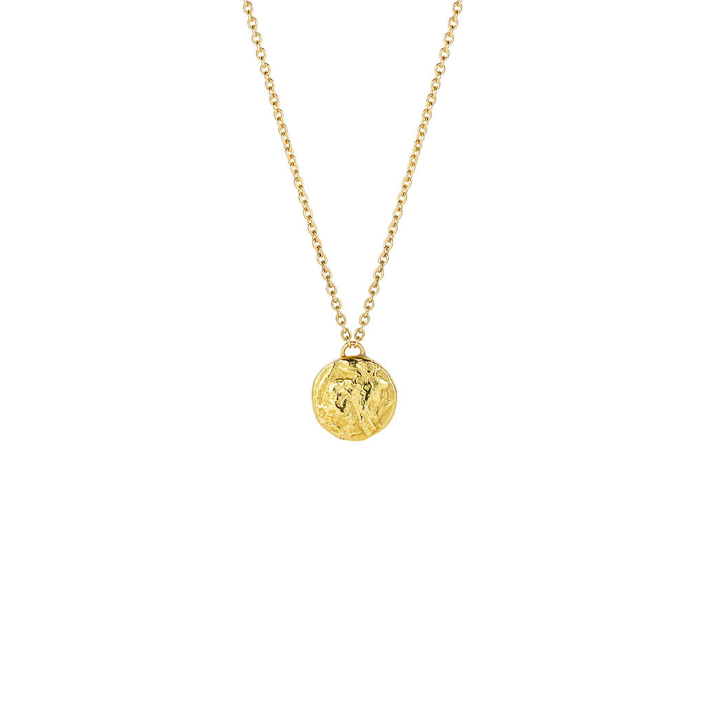 The Amphora necklace in 18K yellow gold features a beautifully carved ancient greek vase at its centre. On its reverse is the helmeted head of Athena, goddess of wisdom, courage and inspiration. The pendant hangs on a fine 18 inch trace chain, suitable for everyday wear or layering with other necklaces - a perfect modern day talisman.