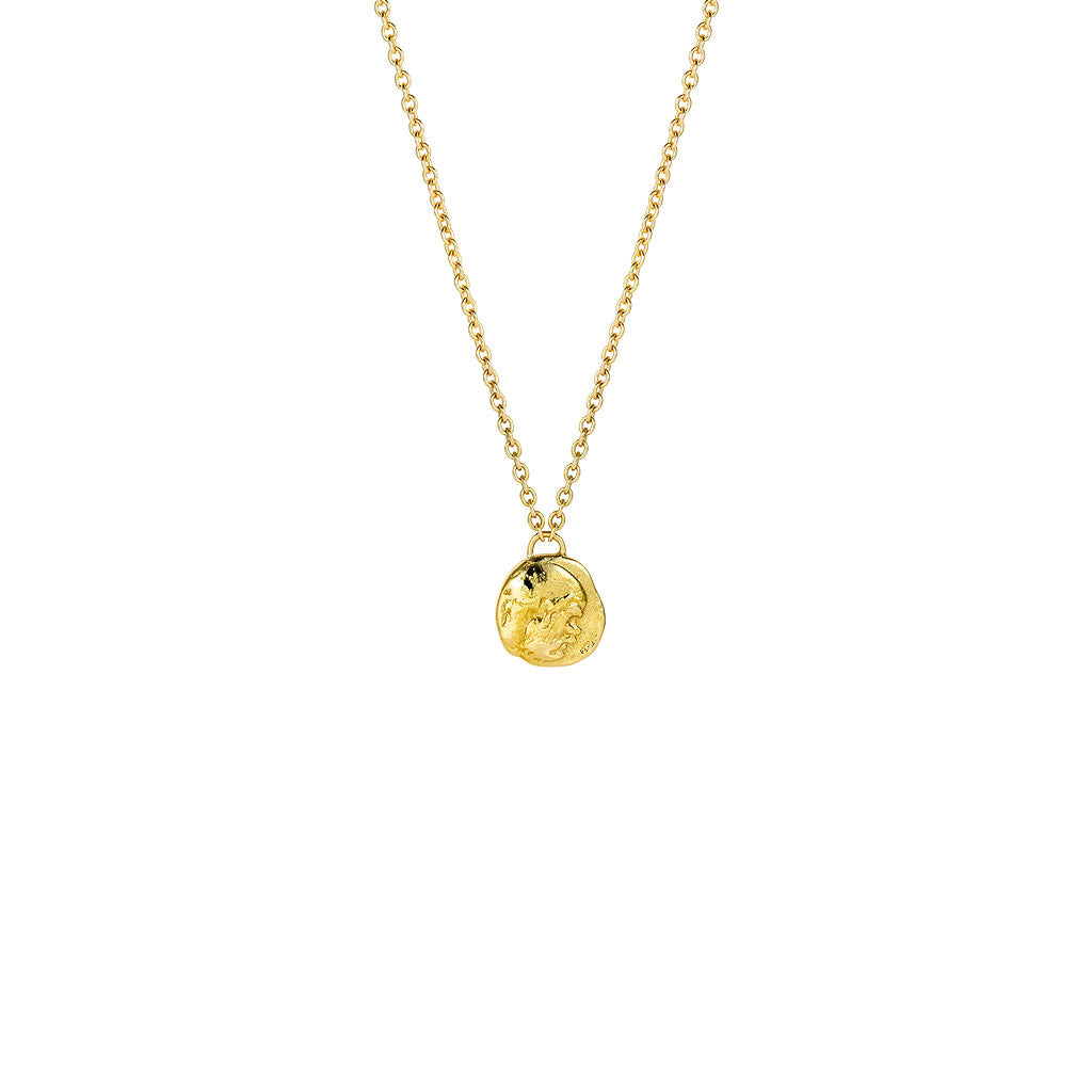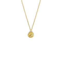 The Delphus necklace in 18K yellow gold is a miniature masterpiece of intricate carving. Featuring a perfectly balanced composition of two naturalistic dolphins leaping in opposite directions. On the reverse is a characterful depiction of an elderly Satyr, Silenus. The pendant hangs on a fine 18 inch trace chain, perfect for everyday wear or layering with other necklaces.